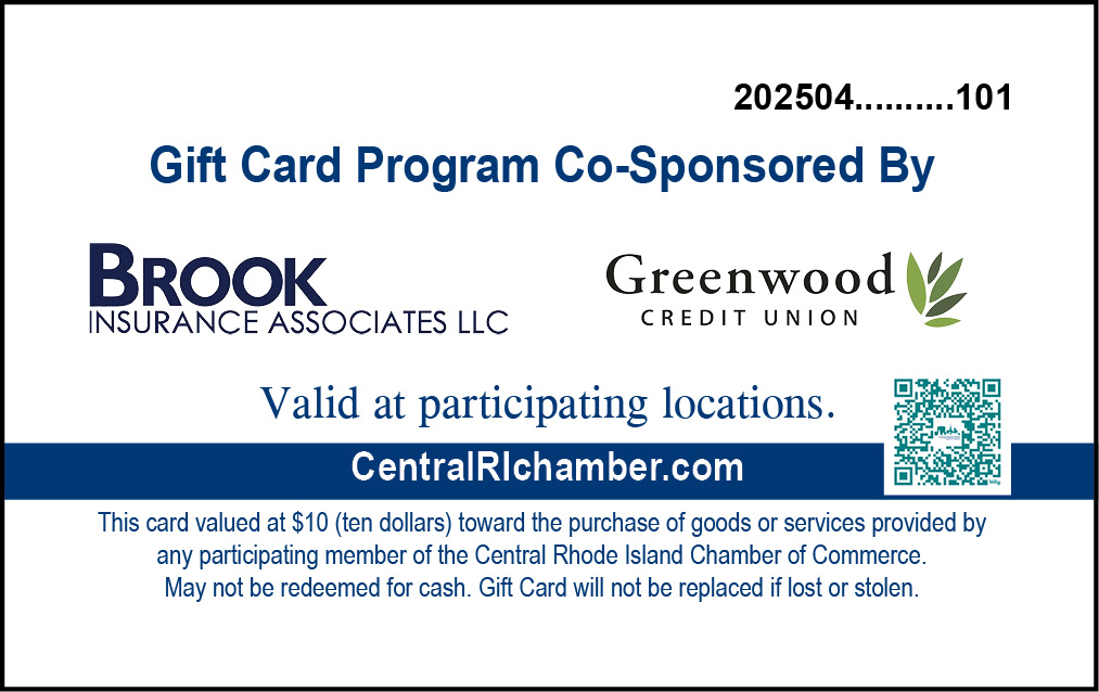 “Sponsoring the Central RI Chamber Gift Card Program is more than just a marketing opportunity – it’s an investment in our local economy and community. As a sponsor, your business is positioned as a champion of a powerful initiative that drives spending to locally owned businesses, supports economic growth, and strengthens consumer loyalty right here in Central Rhode Island. Join us in making a lasting impact!”