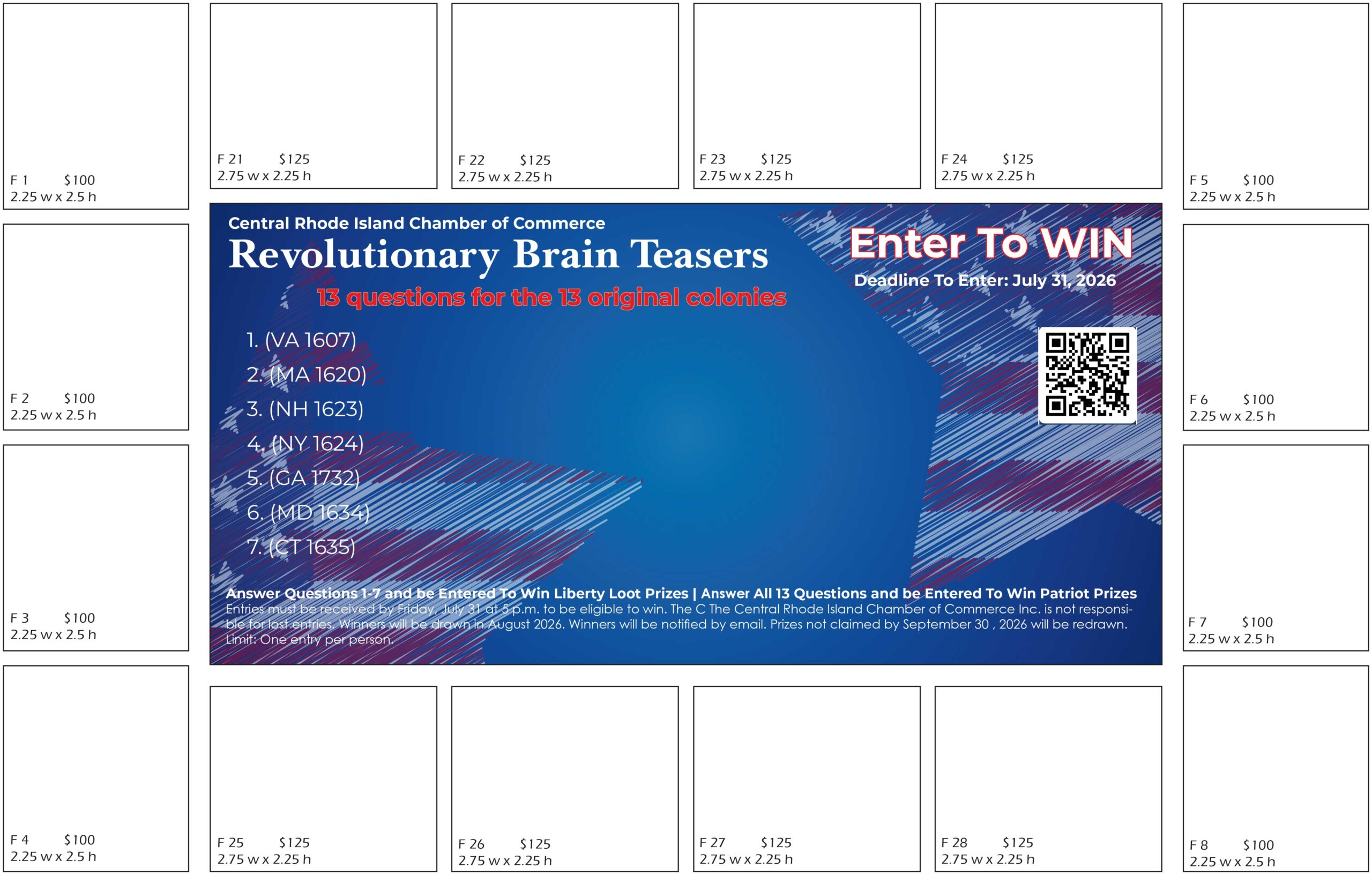 Answer all 13 questions (for the 13 original colonies) and be entered to win Patriot Prizes