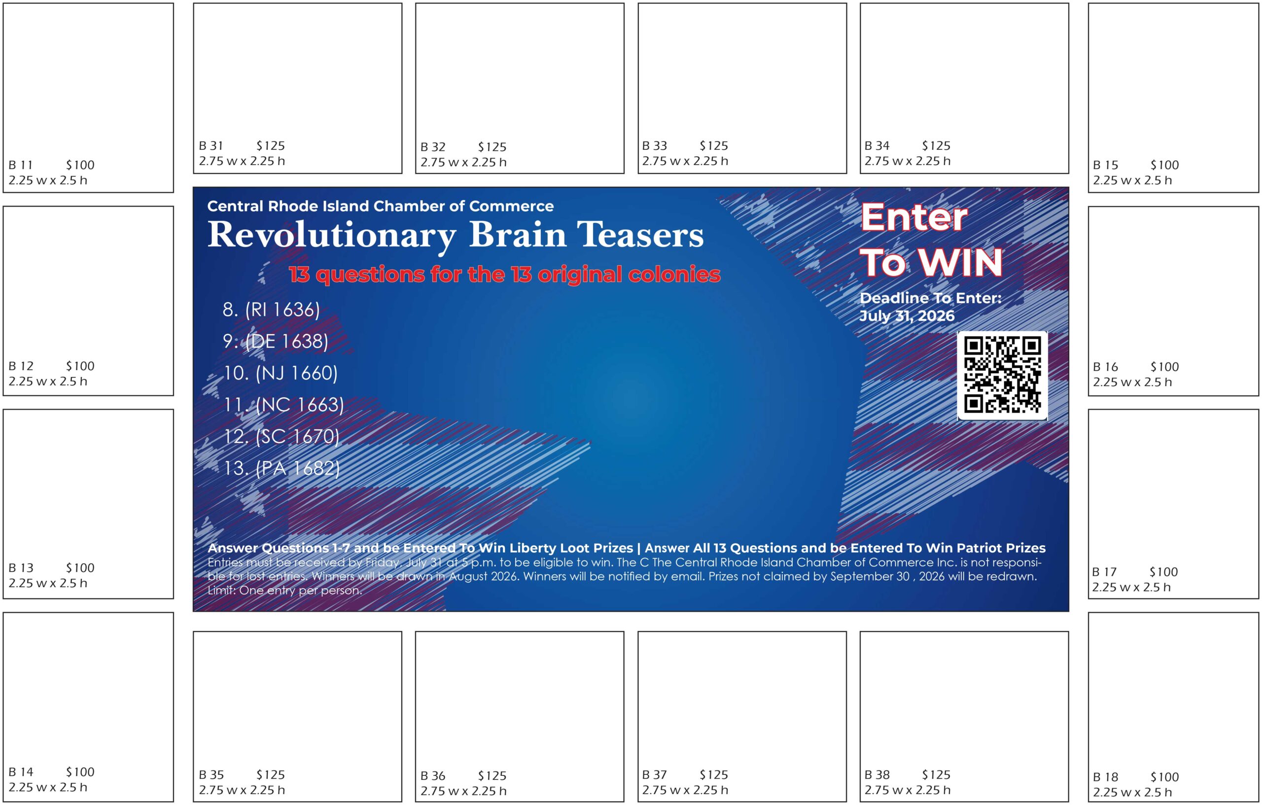Promote your business to a wide audience by securing an ad on our Revolutionary Brain Teasers handout—plus online exposure!